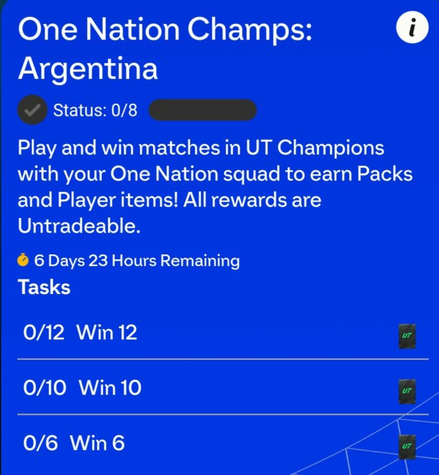 - Победа 12: Выиграйте 12 матчей в финале чемпионов, имея полный состав игроков из Аргентины.