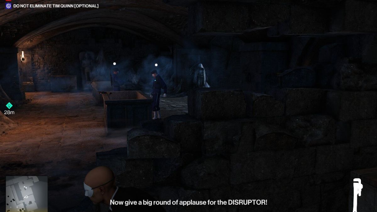 Будучи скрытным игроком, я успешно расправился с охранниками, но теперь пришло время уничтожить Нарушителя, не будучи замеченным. Хотя я мог бы уничтожить его по правилам Silent Assassin, на этот раз я предпочитаю держать все в тайне. Имея наготове пистолет с глушителем, я прицелюсь в голову и тихо покончу с этим.