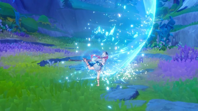 Когда вы нажимаете кнопку навыка Нилу, активируется ее навык стихий, и над ней появляется синий значок. Во время этой активной фазы вы можете использовать до трех дополнительных навыков или обычных атак, нанося гидроурон. В зависимости от последнего хода в этой последовательности Нилу приобретает особые способности. Необходимо завершить цепочку навыков Нилу, чтобы ее усиления цветения вступили в силу, поэтому убедитесь, что синий значок исчез, прежде чем продолжить свой план игры.