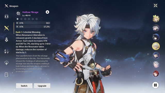 Как игрок, если я не собираюсь приобретать оружие BP для Линъяна, моей главной рекомендацией будет Hollow Mirage. Это 4-звездочное оружие может похвастаться значительным значением атаки 412, дополненным дополнительным показателем 30,3% ATK%. С ним Линъян получит бонус 9% к атаке и защите при активации способности «Освобождение резонанса». Имейте в виду, что эффективность этих баффов снижается на 3% с каждым последующим нанесенным им ударом. Подводя итог, если вы ищете альтернативу оружию BP, Hollow Mirage — хороший выбор. Тем, кто предпочитает F2P, я рекомендую изучить потенциал этого оружия как эффективной альтернативы.